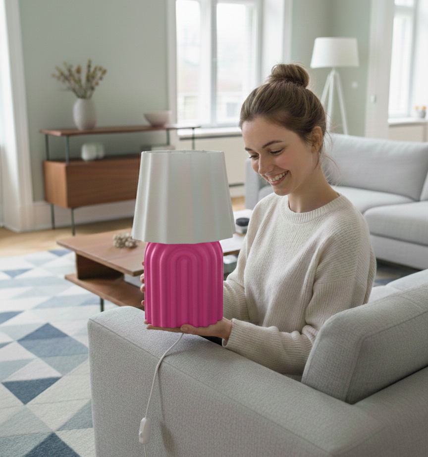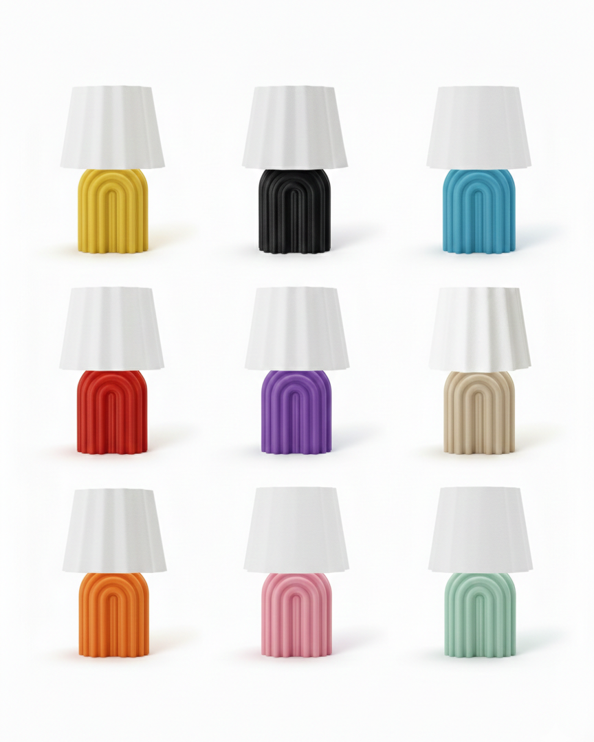 Nuestra Lámpara Umbrella combina un diseño moderno con una estética suave y armoniosa que transforma cualquier ambiente. Su base en forma de arco, con curvas fluidas y un acabado rugoso en varios colores, aporta calidez y personalidad sin perder elegancia.